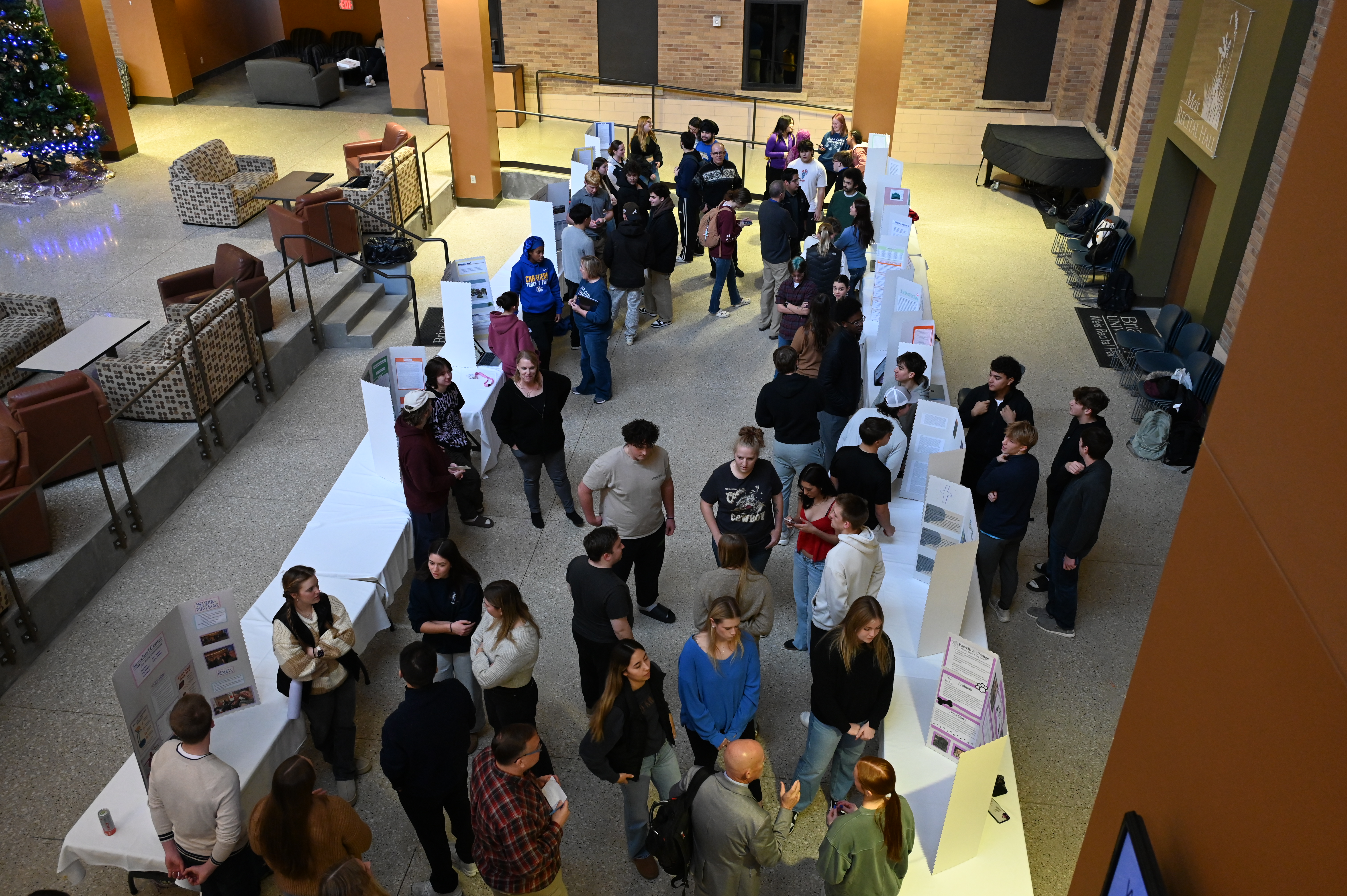 Briar Cliff University hosted the Fall 2025 Freshmen Symposium on Friday, December 5, featuring student poster presentations in the lower atrium of Heelan Hall. The event served as the culminating experience for CORE 105: Briar Cliff Experience, the university’s first-year Project-Based Learning course.